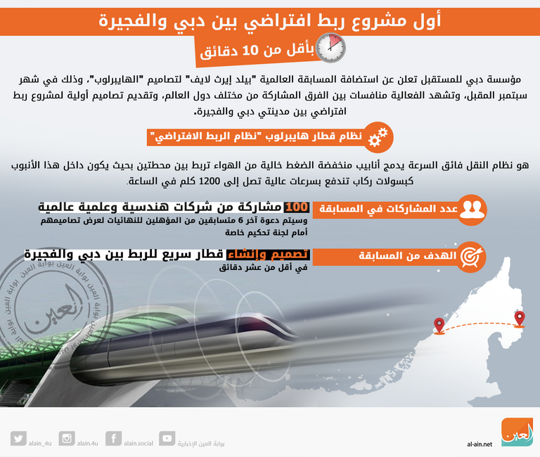 إنفوجراف.. أول مشروع ربط افتراضي بين دبي والفجيرة بأقل من 10 دقائق