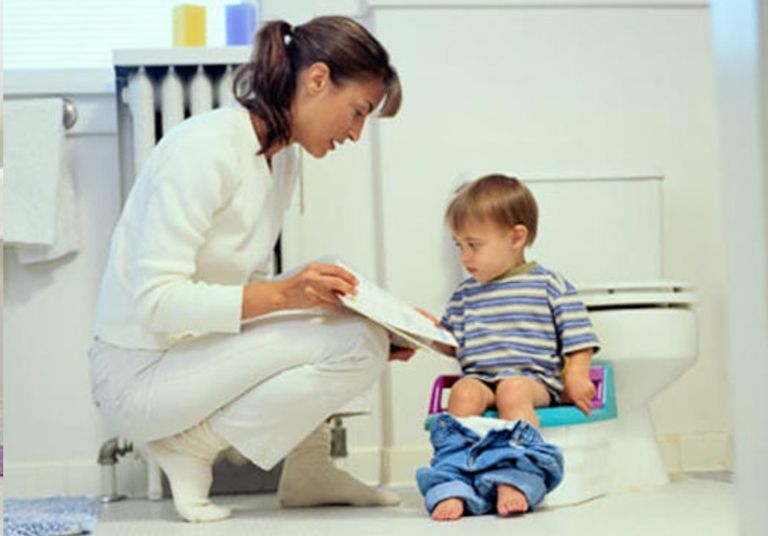 عليك شراء نونية "قصرية" ذات حجم مناسب للأطفال أو مقعد حمام خاص يمكن وضعه فوق قاعدة التواليت العادية، وفي كلتا الحالتين تأكدي من أن طفلك قادر على حفظ توازنه باستخدام قدميه، وقد تحتاجين لشراء كتاب توضيحي بالصور أو فيلم فيديو لطفلك لتحفيزه على عملية التدريب.