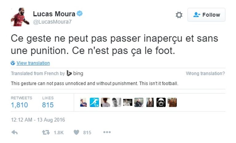 شهدت مباراة باريس سان جيرمان مع مضيفه باستيا في الجولة الأولى من الدوري الفرنسي قيام أحد مشجعي أصحاب الأرض بالاعتداء على لوكاس مورا لاعب بطل فرنسا.
