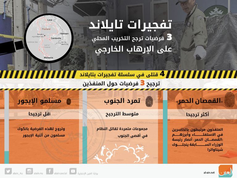إنفوجراف.. 3 فرضيات رئيسية حول منفذي تفجيرات تايلاند