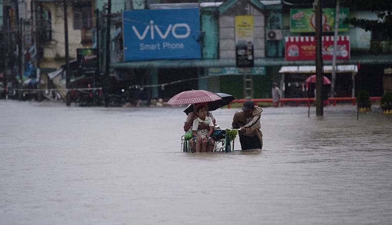 بالصور.. كيف تغلب مواطنو ميانمار على مياه الفيضانات ؟