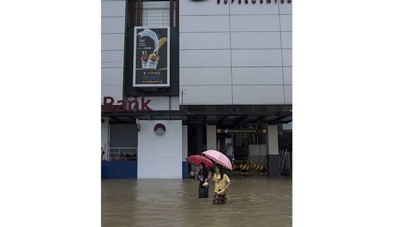 رغم مياه الفيضانات التي أغرقت شوارع ميانمار إلا أن مظاهر الحياة لم تختف حيث يواصل السكان أنشطتهم قدر المستطاع