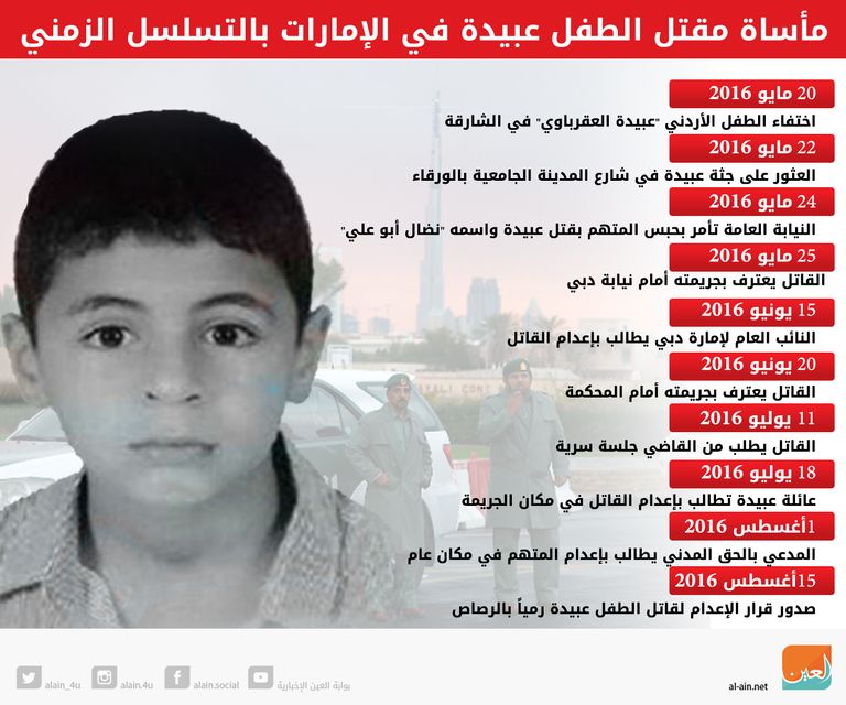 إنفوجراف.. مأساة مقتل الطفل عبيدة في الإمارات بالتسلسل الزمني