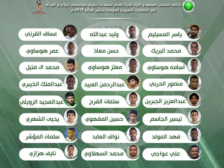 أعلن الهولندي بيرت فان مارفيك، المدير الفني للمنتخب السعودي الأول، عن القائمة المختارة للمشاركة في البرنامج الإعدادي استعدادا لخوض مواجهتي الأخضر الافتتاحيتين في التصفيات الآسيوية المؤهلة لكأس العالم 2018، أمام تايلاند في الأول من شهر سبتمبر المقبل في الرياض، والعراق في السادس من الشهر ذاته في العاصمة الماليزية كوالالمبور.