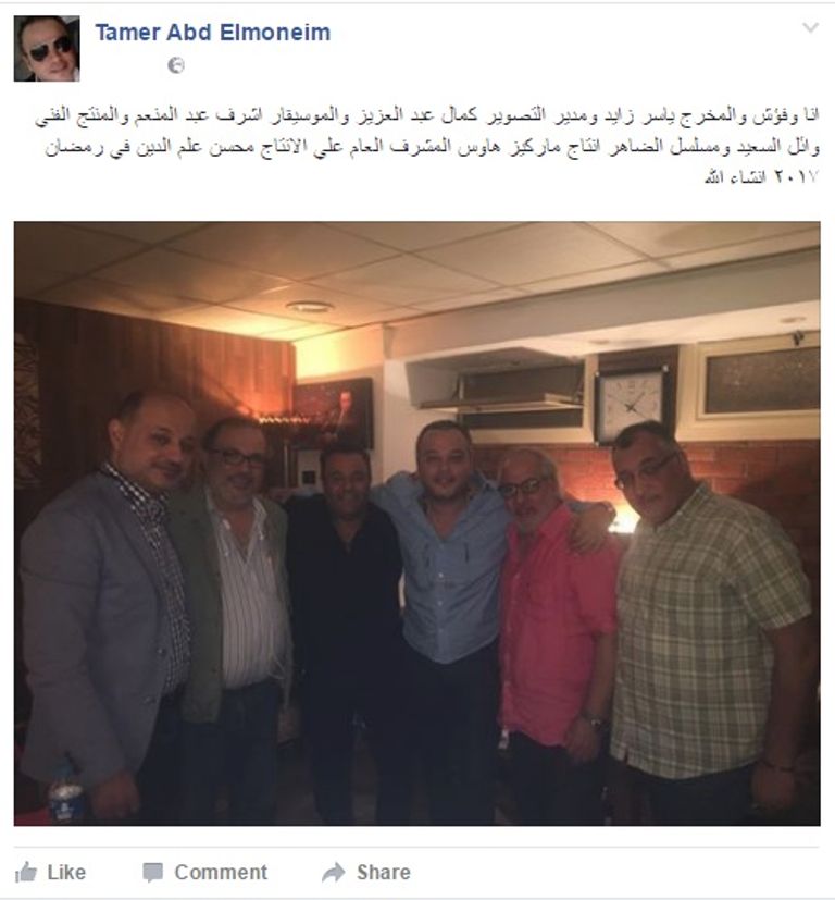 ونشر تامر عبد المنعم، عبر حسابه الشخصي بموقع "فيس بوك" صورة تجمعه بمحمد فؤاد والمخرج ياسر زايد ومدير التصوير كمال عبد العزيز والموسيقار أشرف عبد المنعم والمنتج الفني وائل السعيد.