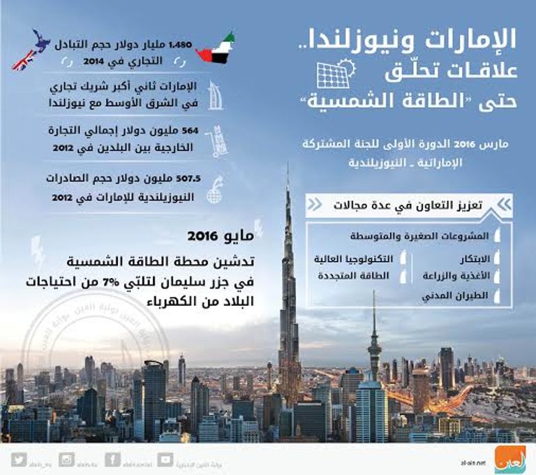 إنفوجراف.. الإمارات ونيوزلندا علاقات تحلّق حتى "الطاقة الشمسية"