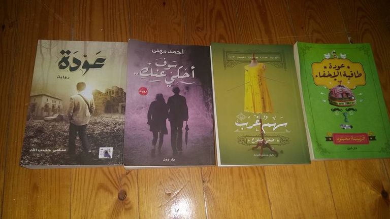 "ثلاثية غرناطة" لرضوى عاشور، و"ساق البامبو" لسعود السنعوسي، و"يوم غائم في البر الغربي" لمحمد المنسي قنديل، كتب ضمن مجموعة كبيرة من الكتب "المستعملة" المعروضة بأسعار رمزية على جروب" free books" على فيسبوك.