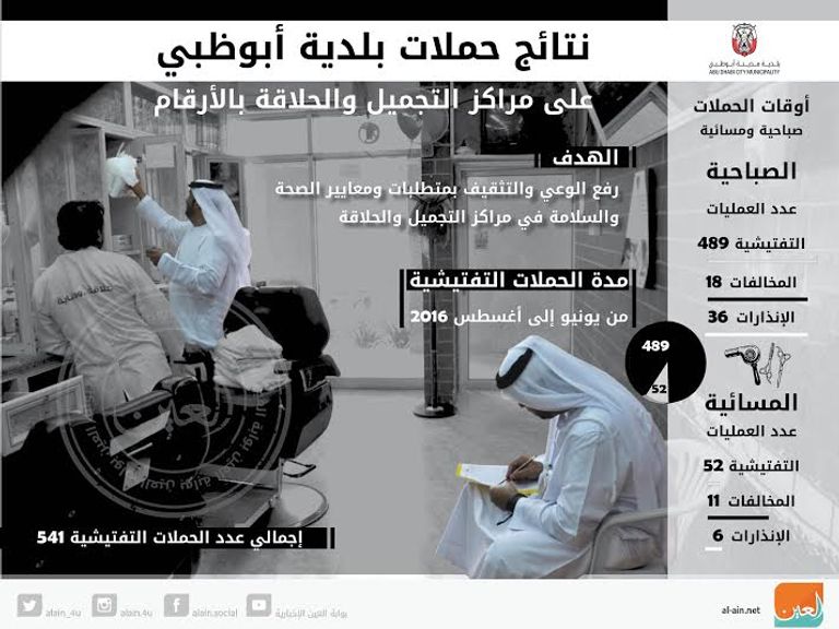 إنفوجراف.. نتائج حملات بلدية أبوظبي على مراكز التجميل والحلاقة