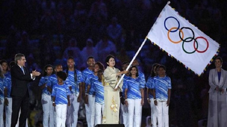 وضمن الفقرات الأخيرة من حفل ختام الأولمبياد، تسلم توماس باخ العلم الأولمبي من إدواردو بايس عمدة ريو دي جانيرو وسلمه إلى يوريكو كويكي عمدة مدينة طوكيو التي تحتضن أولمبياد 2020، ليبدأ بعدها تسليط الضوء على الأولمبياد المقبل في طوكيو.