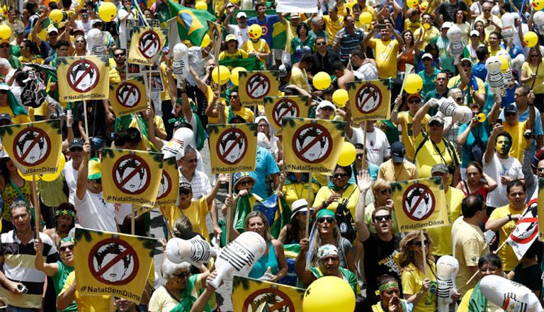 احتشد آلاف الأشخاص في 100 مدينة بالبرازيل للمطالبة بإقالة حكومة الرئيسة ديلما روسيف، التي تواجه في الوقت الراهن محاكمة سياسية