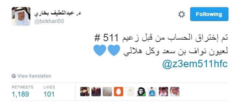 اخترق أحد مشجعي نادي الهلال، الحساب الشخصي لعبد اللطيف بخاري، عضو اتحاد الكرة السعودي؛ وذلك اعتراضًا على تغريدة نشرها قبل ساعات اتهم فيها القائمين على إدارة بطولة الدوري بالتآمر لصالح الهلال.