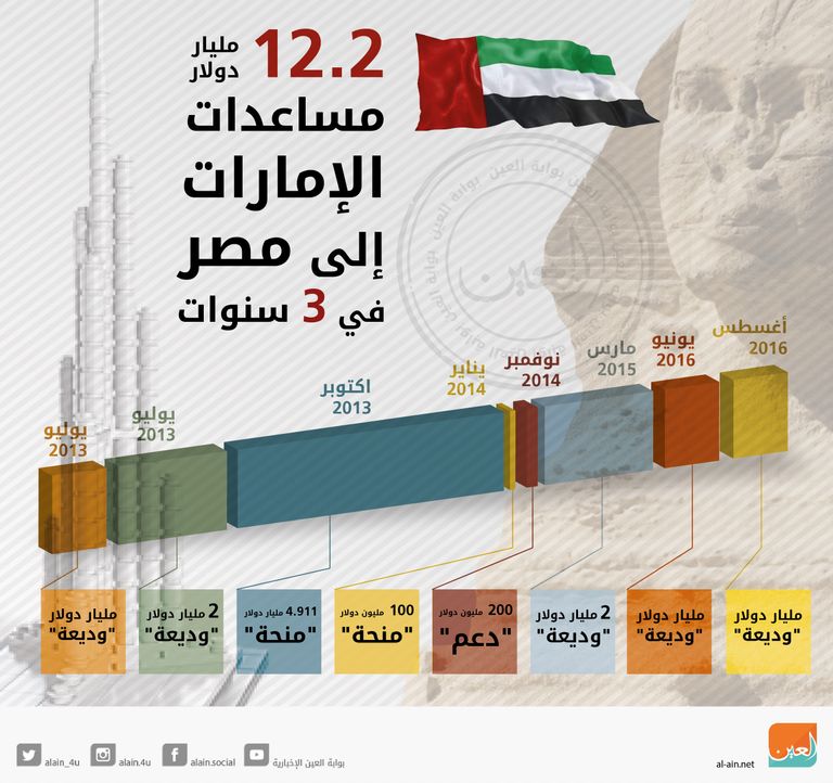 إنفوجراف.. 12.2 مليار دولار مساعدات الإمارات لمصر في 3 سنوات