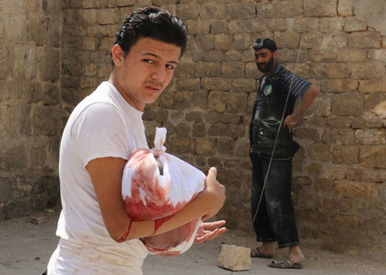 11 طفلًا قتلوا، اليوم الخميس، في قصف جوي لقوات النظام السوري بالبراميل المتفجرة على أحد الأحياء الواقعة تحت سيطرة المعارضة