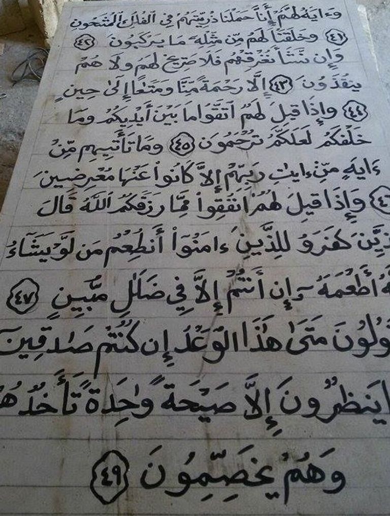 ما هدفك من نحت القرآن الكريم كاملًا على الرخام؟