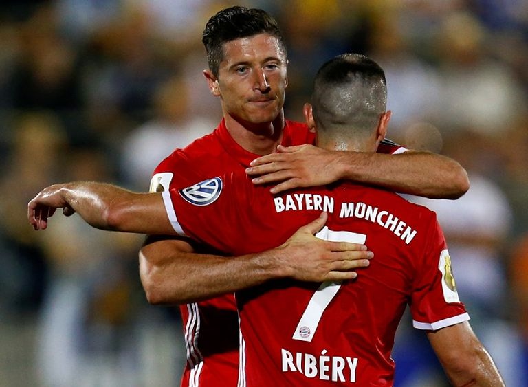 ودفع القائد فيليب لام وريبيري ببايرن للتقدم 5-صفر قبل أن يكمل ليفاندوفسكي ثلاثيته من ركلة جزاء في الدقيقة 77، وهي ثاني ثلاثية له هذا الموسم بعد تسجيله ثلاثة أهداف في مباراة ضمن كأس ألمانيا الأسبوع الماضي.