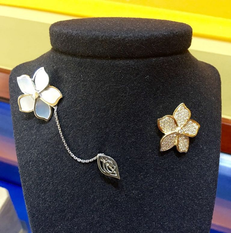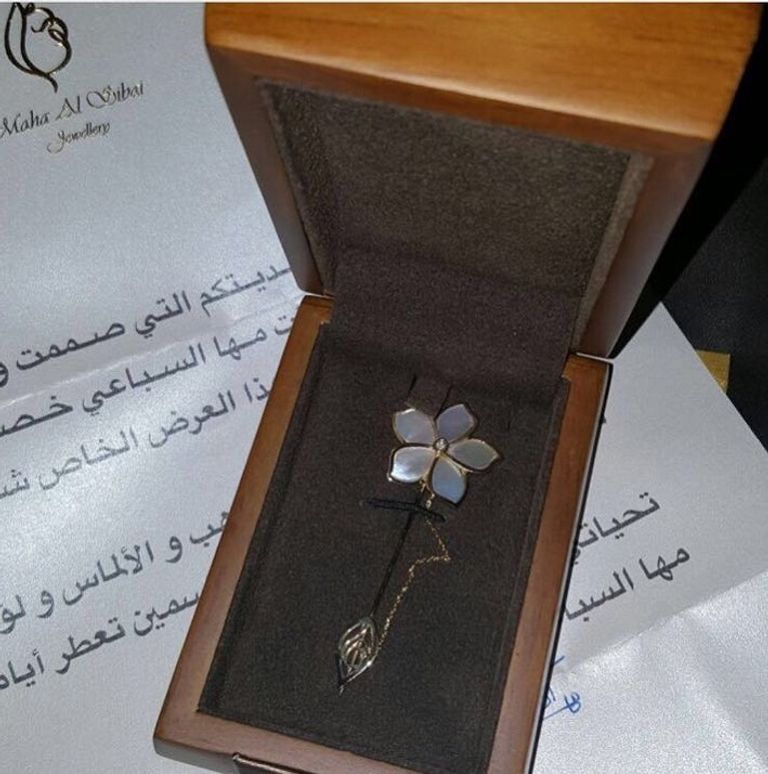 وفي تصريحات خاصة، كشفت السباعي عن أن الياسمينة الدمشقية مكونة أساسا من الماس والصدف والذهب، وأنها تصلح بكافة الأحجام، وتستخدم لدى الرجال والسيدات معا وبأكثر من طريقة.