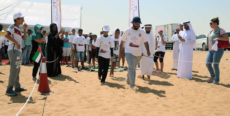 هكذا رأيتهم عندما ذهبت إليهم في منطقة الهباب في دبي لأشهد على لحظة انطلاق 135 مشاركاً قرروا أن يخوضوا غمار التجربة ويتحدّوا ما يعتبره كثيرون المستحيل من خلال سيرهم حفاة مسافة 100 متر على رمال الصحراء الساخنة في تلك الأيام.