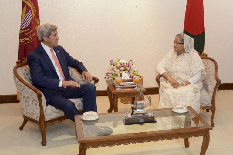 وقال كيري بعد محادثات مع مسؤولين في حكومة رئيسة الوزراء الشيخة حسينة واجد إن هناك دليلا على ارتباط المتطرفين الذين يقفون وراء الهجمات الاخيرة في بنجلادش بتنظيم داعش.