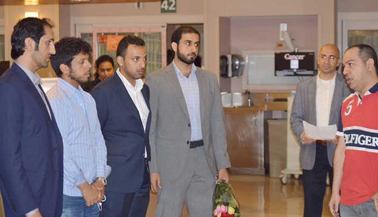 محمد خليفة الهاملي نقل تحيات الشيخ محمد بن زايد آل نهيان ولي عهد أبوظبي نائب القائد الأعلى للقوات المسلحة، للمرضى وذويهم.