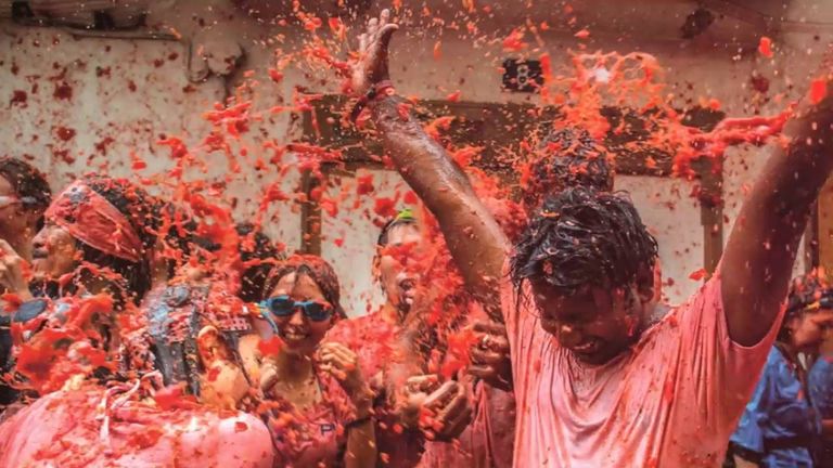 وغطى سكان المدينة اليوم واجهات المتاجر والمنازل لحمايتها من عصير الطماطم الأحمر؛ حيث يتوقعون أن يتكدس آلاف الأشخاص، وسيرتدي بعضهم النظارات لوقاية أعينهم من الفاكهة الطائرة للمشاركة في المعركة الضخمة.