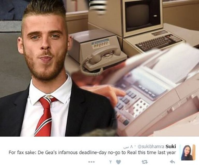 وقال أحد المشجعين في تغريدة على "تويتر": "مرت سنة على تعطل فاكس ريال مدريد.. الحمد لله أن دي خيال لا يزال في مانشستر يونايتد"، وقال آخر: "أنا ممتن جداً لجهاز الفاكس المدريدي.. لا بد من وضعه في متحف مانشستر يونايتد ليوم واحد".