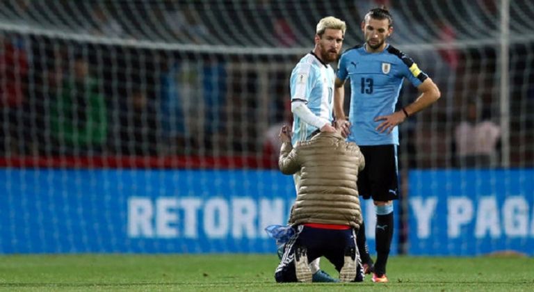 وبخلاف ذلك فقد اندفع أحد المشجعين إلى ملعب المباراة من أجل الانحناء أمام ميسي تقديرا له في لقطة أدهشت المتابعين، قبل أن يخرج المشجع من الملعب.