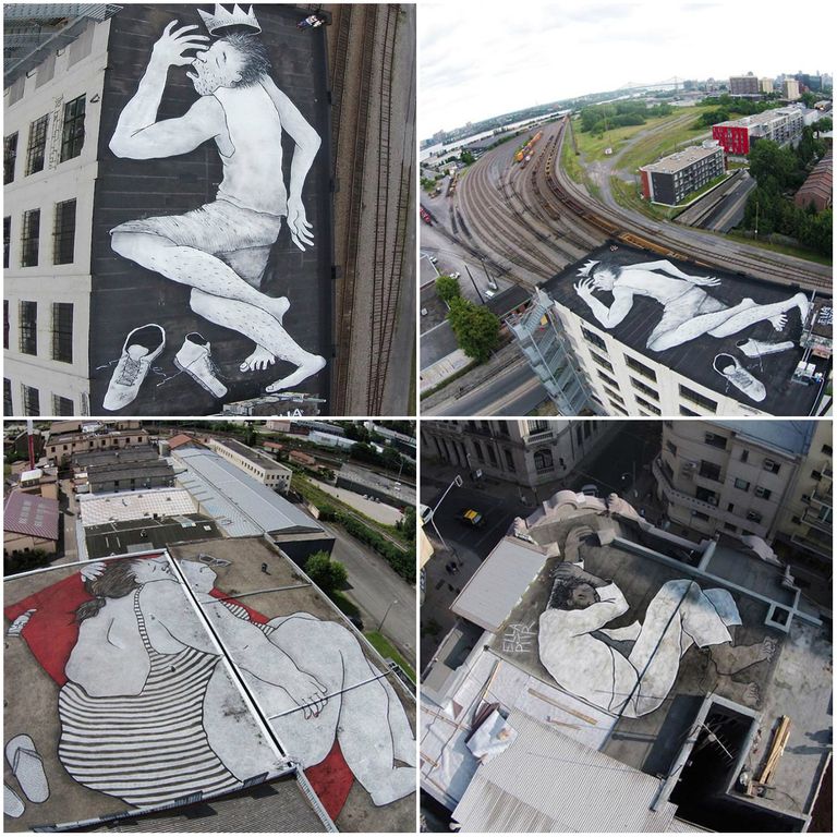وتشتمل أعمالهما على رسم أشخاص نائمين بحجم كبير وبوضعيات مختلفة على أسطح المباني ومواقف السيارات، بحسب موقع "talesmaze".