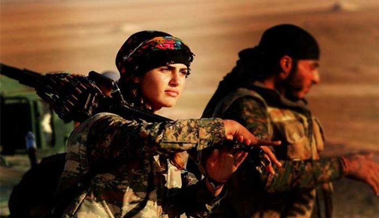 مستخدمو مواقع التواصل الاجتماعي يتداولون صوراً لمقاتلة كردية سورية قالوا إنها تشبه الممثلة الأمريكية أنجيلينا جولي.