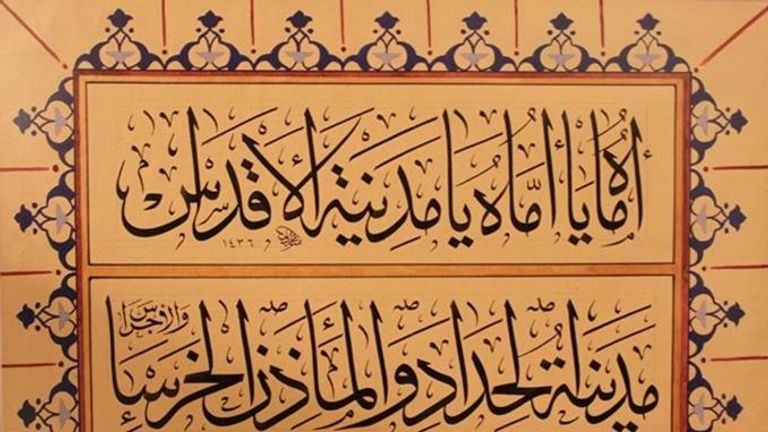 للخط العربي جمالياته الفنية التي تستقطب العديد من عشاق هذا الفن ومريديه، ولـ"القدس" محلها الأرفع في النفوس والقلوب معًا، في معرض فني اجتمع الاثنان، ليكون معرض «القدس في العيون» نافذة لعشاق الخط العربي للاستمتاع بالنظر إلى لوحات فنية شكلتها كلمات أبيات شعرية وآيات قرآنية كتبت بأشكال متعددة من هذا الخط.