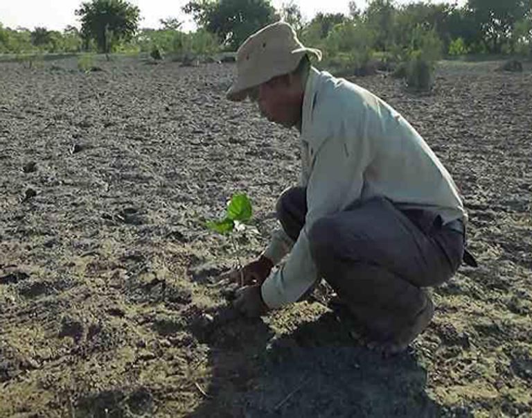 وبدأ الهندي جداف باينج، عندما كان مراهقًا في السبعينيات، استصلاح تلك الأراضي، عندما لاحظ وجود ثعابين ميتة على الشاطئ، وتآكل الغطاء النباتي، في المنطقة التي يعيش فيها، ما دفع مئات الفصائل من الكائنات الحية إلى الفرار من ذلك المكان، الذي بدأ في التصحر.