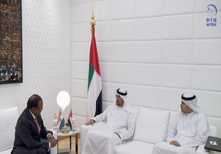 الشيخ محمد بن زايد آل نهيان ولي عهد أبوظبي نائب القائد الأعلى للقوات المسلحة استقبل مستشار الأمن الوطني الهندي أجيت دوفال.
