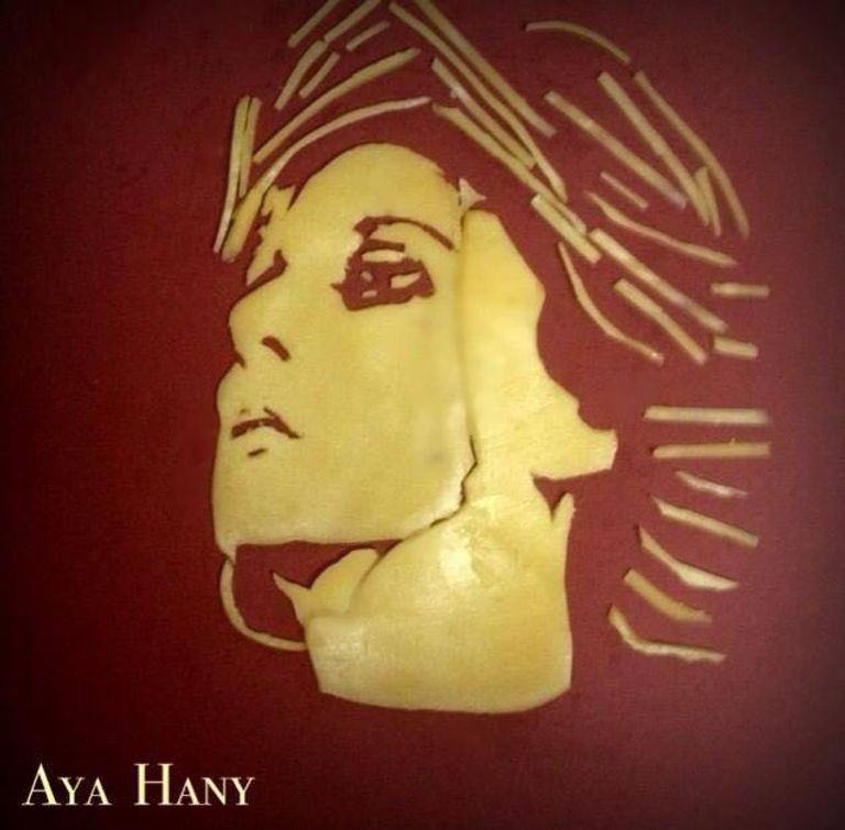 تستخدم طالبة مصرية عسل النحل وصلصة الطماطم وشوكولاتة النوتيلا وغيرها في إبداع أعمال فنية متميزة بألوان طبيعية من المطبخ، والطريف أنها ترسم اللوحات ثم تأكلها بعد قليل في أحيان كثيرة.