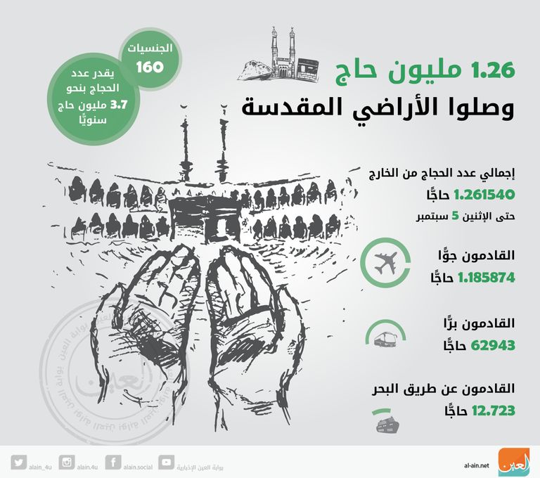 إنفوجراف.. 1.26 مليون حاج وصلوا الأراضي المقدسة