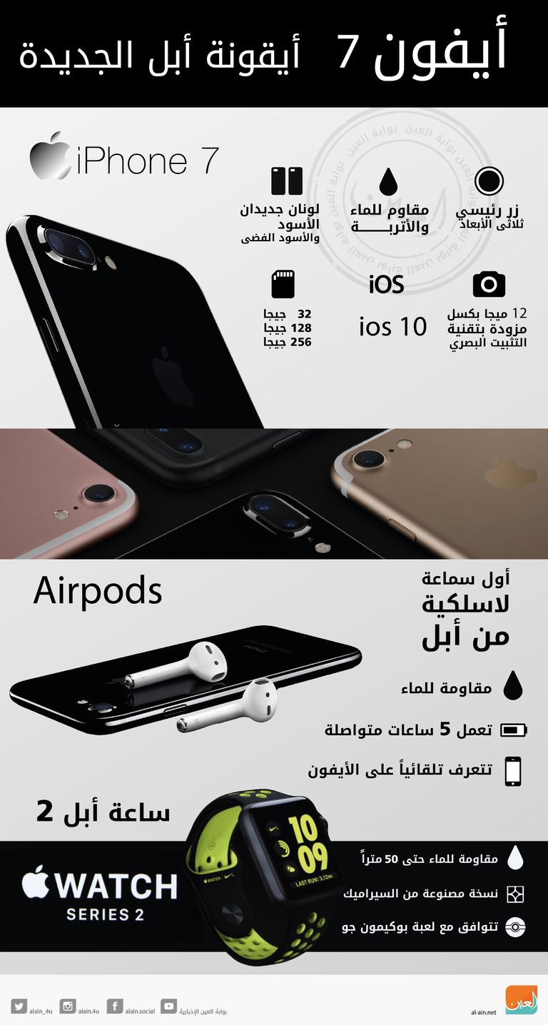بوابة " العين" الإخبارية تقدم إنفوجراف عن هاتف "آيفون 7" الذى طرحته شركة آبل