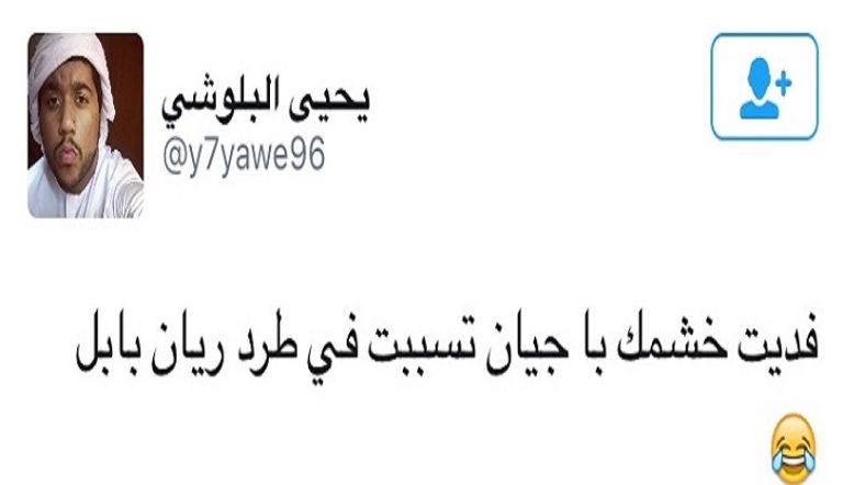 وقال المغرد يحي البلوشي: "فديت خشمك يا جيان.. تسببت في طرد ريان بابل".