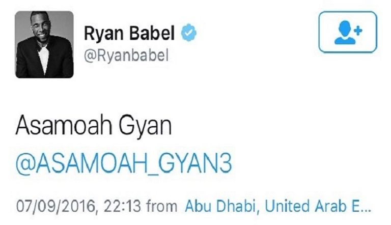ونشر اللاعب، عبر حسابه على تويتر، تغريدة اعتبرتها الجماهير العيناوية مستفزة، كتب من خلالها اسم "أسامواه جيان"، زميله السابق في نادي العين ومهاجم الأهلي الحالي، فيما اعتبره البعض تهنئة من بابل لجيان بالهدف الذي سجله الأخير في شباك البنفسجي، في بطولة كأس الإمارات، في اللقاء الذي انتهى بفوز بطل الدوري بنتيجة 5-1، مما استفز بشدة إدارة العين وجماهيره.