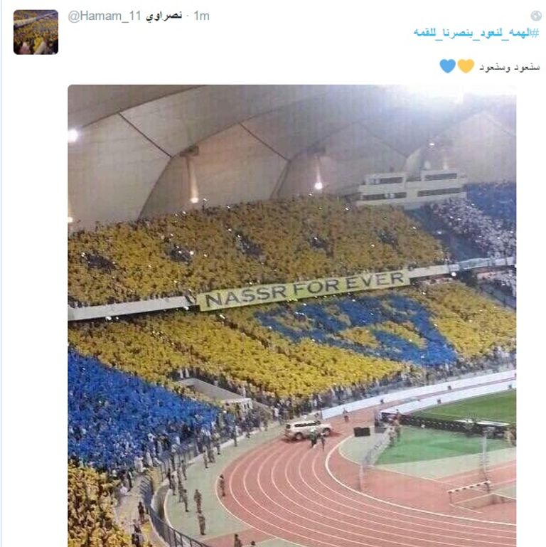 لكن يبدو أن الفوز الأخير للنصر على حساب الاتحاد في كلاسيكو الجولة الـ 12 للدوري بثلاثية نظيفة قد زاد الثقة في نفوس أنصار "العالمي"، الذين قادوا حملة على موقع "تويتر" حملت "هاشتاق": "الهمة لنعود بنصرنا للقمة".