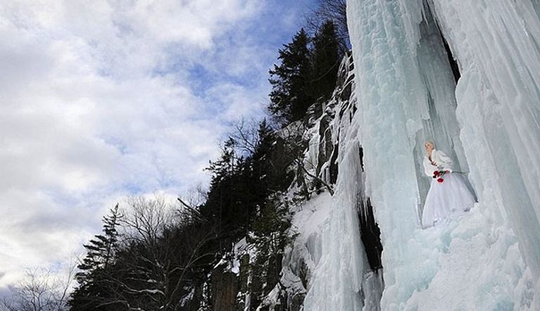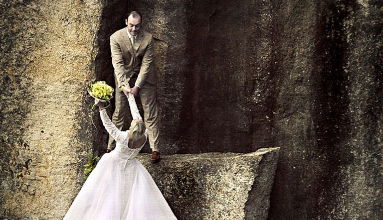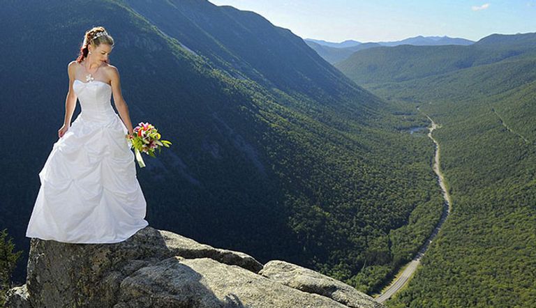 إحدى الصور التي تجعلك تصاب بالذهول من خطورتها، يقوم فيها الزوجان كريستي سولكوسكي وكيفين كولمان، بالتدلي من حافة جبل، وهما يرتديان ملابس زفافهما الكاملة.