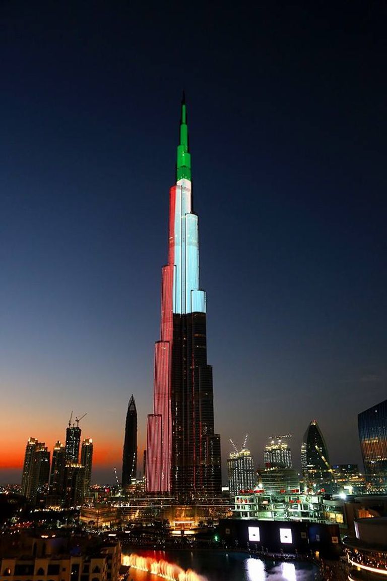 وأنار برج خليفة في دبي أطول أبراج العالم، أضواءه بعلمي البحرين وقطر احتفالاً بعيديهما الوطني، الذي يصادف يوم 16 من ديسمبر للبحرين و18 من الشهر ذاته لدولة قطر.