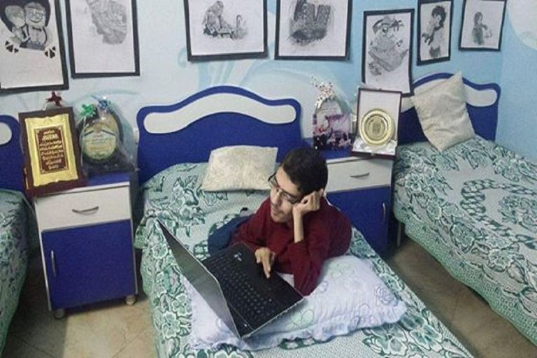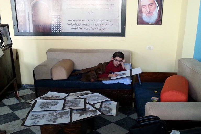 في زاوية غرفته الصغيرة، بأحد منازل غزة، ينهمكُ الفلسطيني محمد الدلو (20 عامًا) في رسم صورة قديمة بقلم رصاص اختاره بعناية، بعدما انقطع عنها قبل 3 سنوات بسبب ظروفه الصحية.