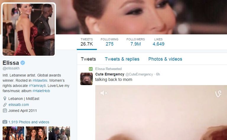 9 ألبومات غنائية متميزة جعلت للنجمة اللبنانية إليسا مكانا في قلوب الجمهور العربي بإحساسها وصوتها الرائع، وذلك فضلا عن مشاركتها في عضوية لجنة تحكيم برنامج اكتشاف المواهب "إكس فاكتور"، لتأتي بالمركز الثاني في القائمة بعدد 7.9 مليون متابع.