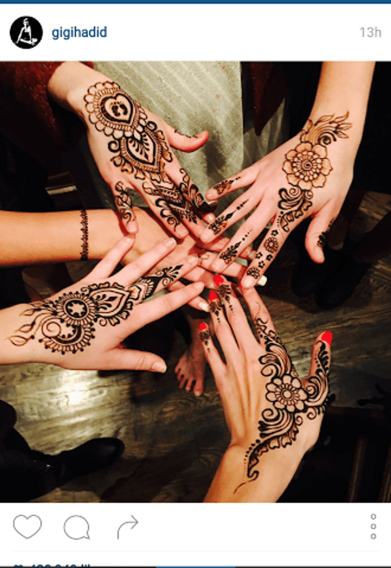 وكانت حديد قد نشرت صورة لها وهي تضع نقش الحناء على يديها مع صديقاتها، معبرة عن فرحتها بعودتها لأصولها، قائلة: "إنني فرحة بقضاء وقتي مع أصدقائي القدامى الذين تربيت معهم .. أشعر أنني عدت 10 سنوات إلى الوراء، أنا فخورة بكل ما تربيت عليه من قبل أهلي، والعودة إلى أصولي تُسعدني".