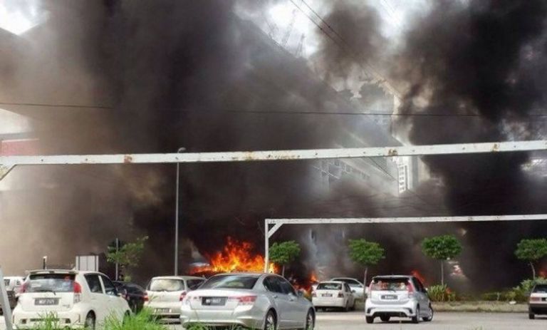 قام رجل ماليزي غاضب بإلقاء زجاجة مليئة بالوقود على سيارة زوجته وإشعالها؛ ما تسبب في امتداد النيران لتلتهم 5 سيارات أخرى بجوارها في أحد المواقف في مدينة سيلانجور الماليزية.