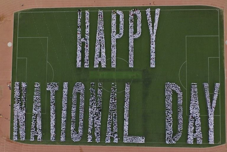 وضمت هذه الجملة 6958 طالبًا من 35 مدرسة، وجسّدوا عبارة "يوم وطني سعيد" في ملعب مدرسة أكاديمية جيمس.