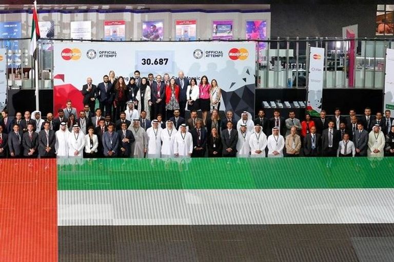 في الثالث من نوفمبر، سُجل رقم قياسي جديد في موسوعة "غينيس" لأكبر فسيفساء لعلم دولة الإمارات باحتفال في "دبي مول".