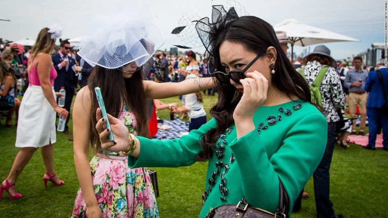 - فتاتان في وضعية التقاط "سيلفي" في نفس الوقت، خلال سباق "ملبورن" للجياد في أستراليا في نوفمبر.