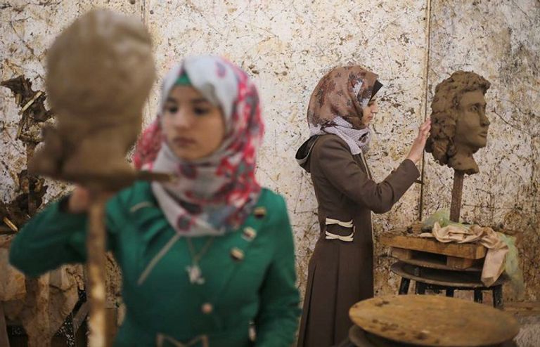 تلجأ الفتيات إلى محاولة الهرب من واقع الحصار والإغلاق الإسرائيليين بممارسة هوايتي النحت والتصوير..