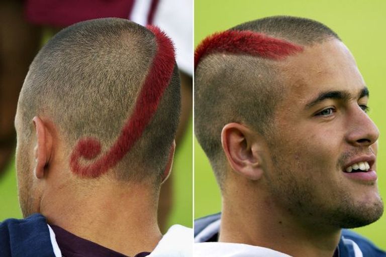الإنجليزي جول كول قام بحلق شعره كاملًا، تاركًا خطًّا رفيعًا من الشعر صبغه باللون الأحمر، وذلك وقت أن كان لاعبًا في ويست هام.