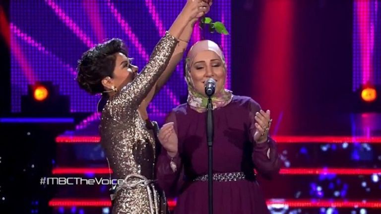 واحتفلت نداء -23 عاما، التي أثارت جدلا بسبب كونها محجبة وتفوز باللقب- وهي تغني في بث تلفزيوني على الهواء مباشرة على خشبة المسرح في العاصمة اللبنانية بيروت.