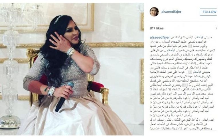 ونشرت أحلام، على صفحتها بموقع "سناب شات"، صورة لها من داخل المستشفى بعد إجراء الجراحة، وكتبت عليها "الحمد لله قمت بإجراء عملية جراحية في رجلي، ادعوا لي".